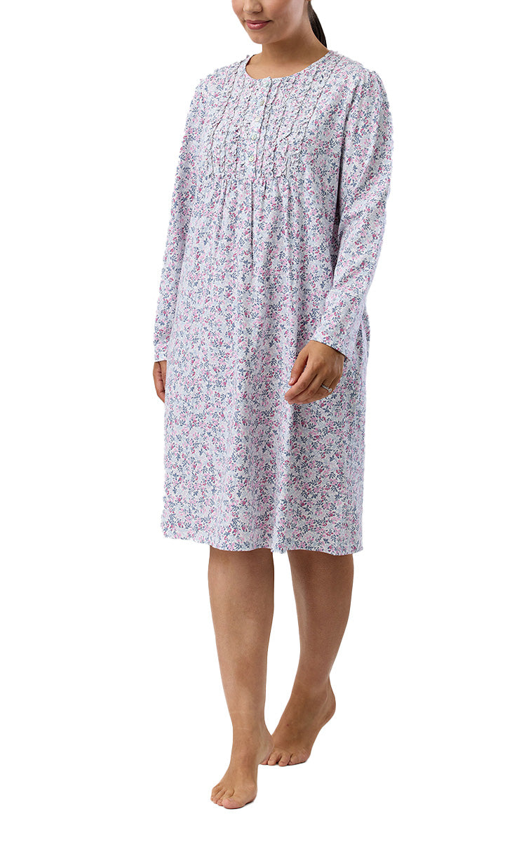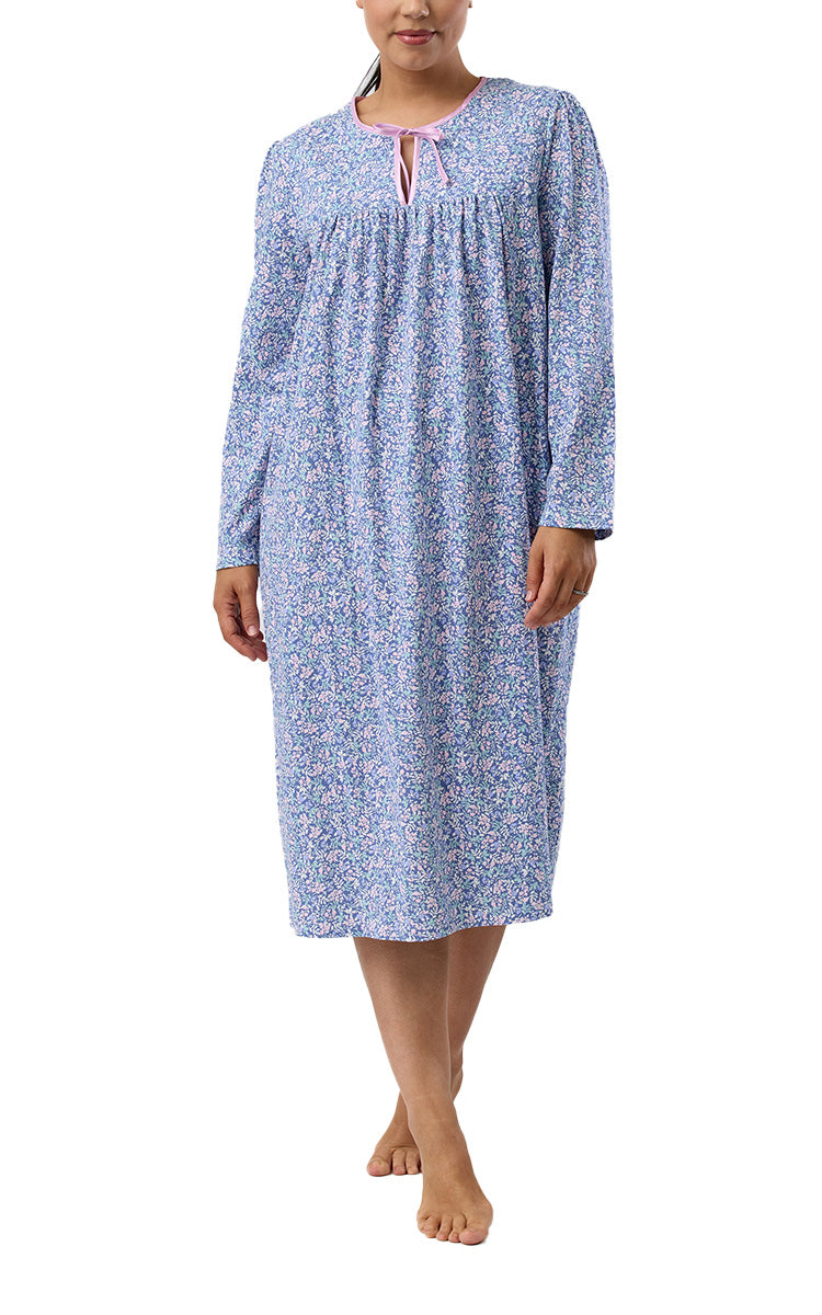 Schrank 100% Cotton Jersey Nightgown with Long Sleeve in Denim Flowerette print SK242F5
