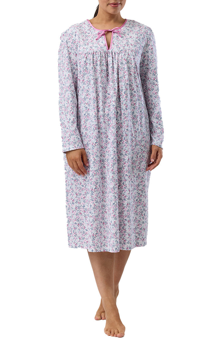 Schrank 100% Cotton Jersey Nightgown with Long Sleeve in Pink Flowerette print SK242F5