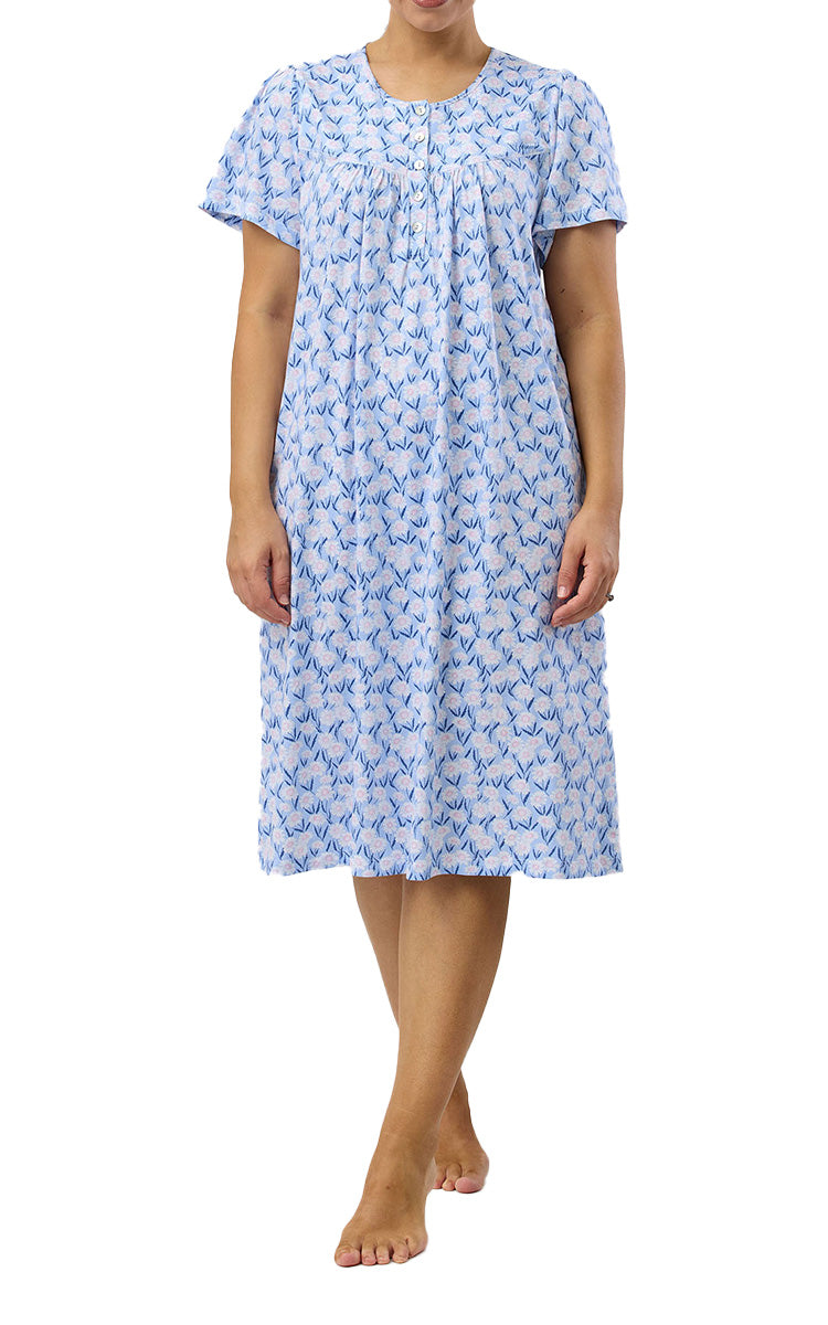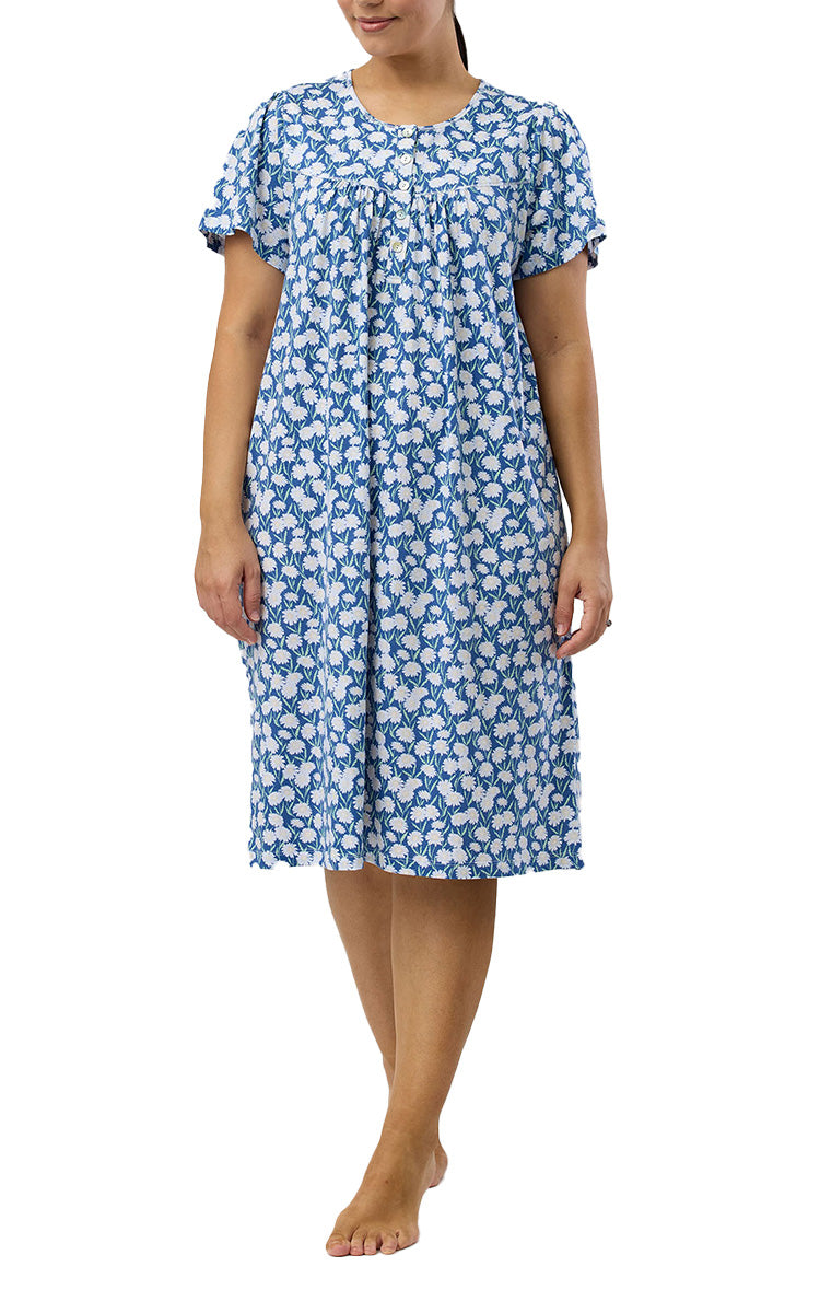 Schrank 100% Cotton Jersey Brunchcoat with Short Sleeve in Blue Daisy SK925D