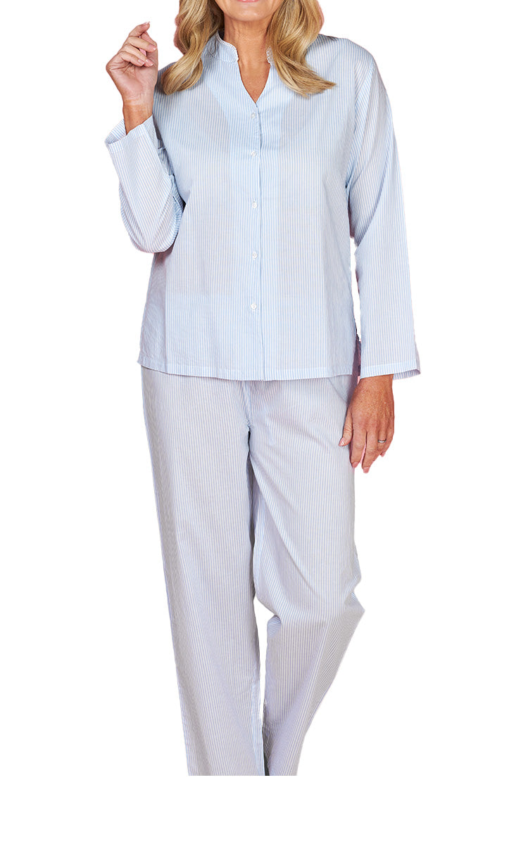 French Country 100% Cotton Pyjama with Long Sleeve in Blue Stripe FCC423