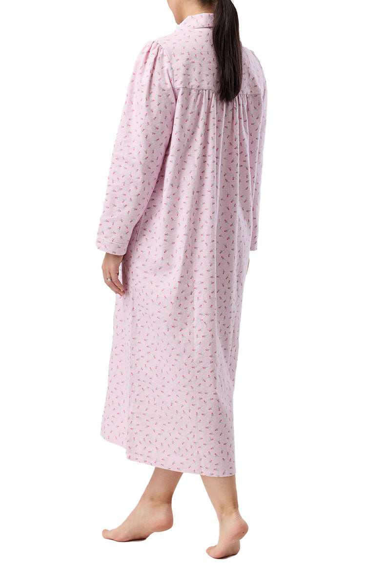 Schrank 100% Cotton Flannelette Long Sleeve Nightgown With Collar In Pink Rose Spot SK618R6