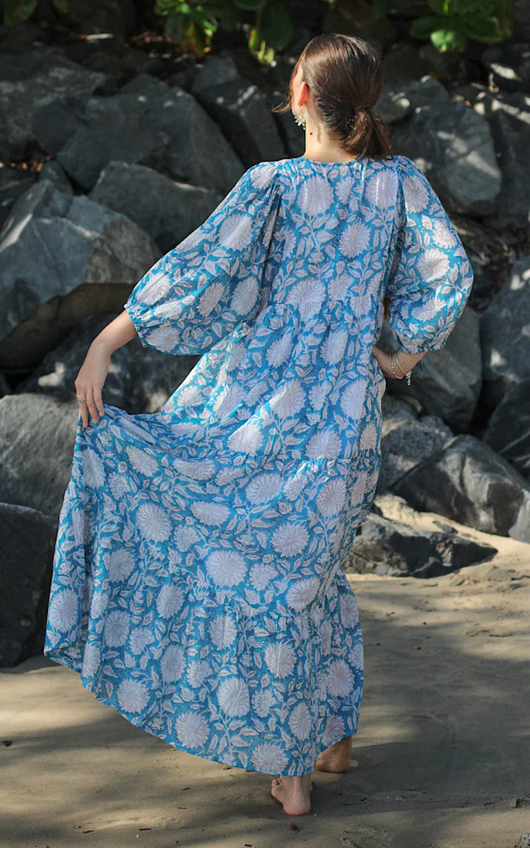 River Goddess 100% Cotton Maxi Dress Neera Sky Sunflower