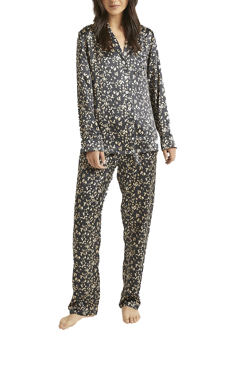 Ginia 100% Silk Pyjama with Long Sleeve in Leopard Print GLEO501 SALE