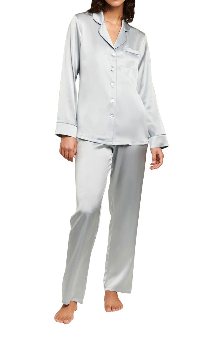 Ginia 100% Silk Pyjama with Long Sleeve in Pearl Blue 5124
