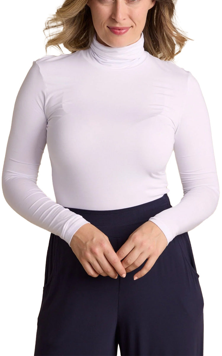 Tani 100% Modal Top with Long Sleeve and Skivvy Neck in White 79278